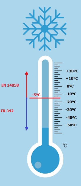 Atualmente são adotadas duas normas distintas, a EN 342 e a EN 14058, para dois cenários de exposição ao frio.