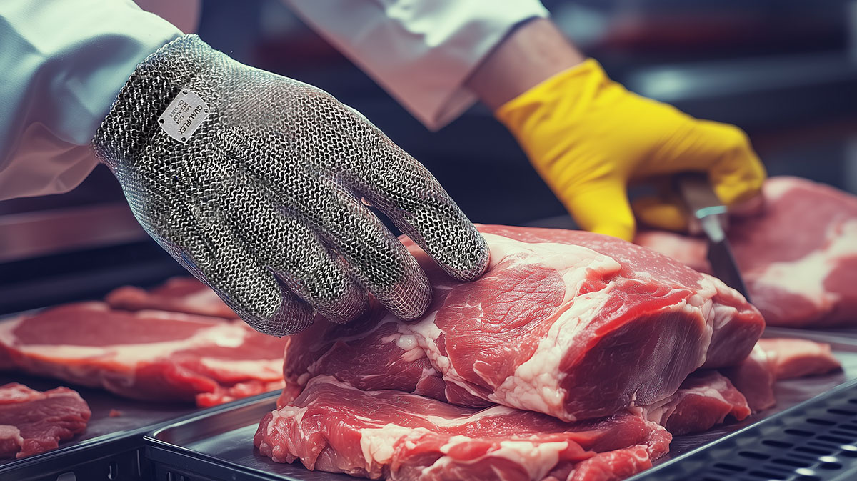 Proteção anticorte, aventais impermeáveis, botas antiderrapantes e resistência à umidade constante.