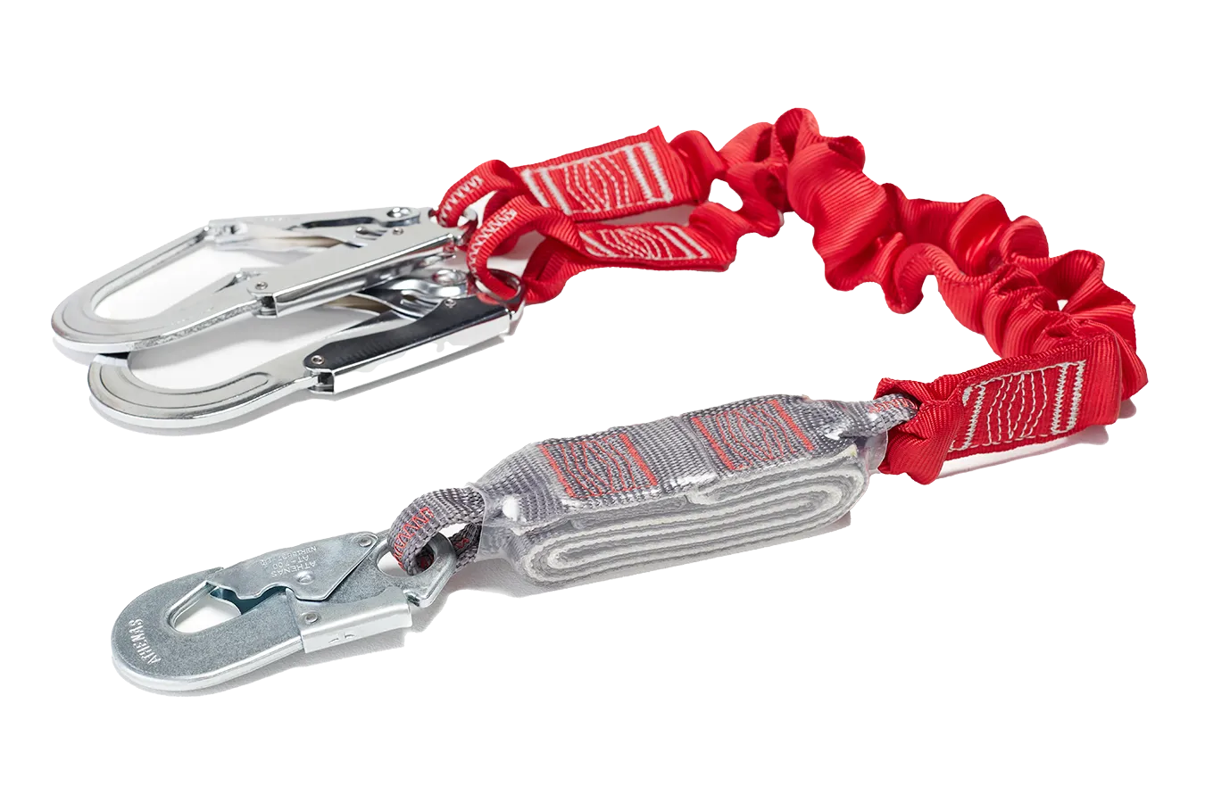 Talabarte modelo “Y”, fita de poliéster tubular, 2 conectores A de 55mm, 1 conector T de 17mm, dupla trava, absorvedor de energia, comprimento 1,35m.