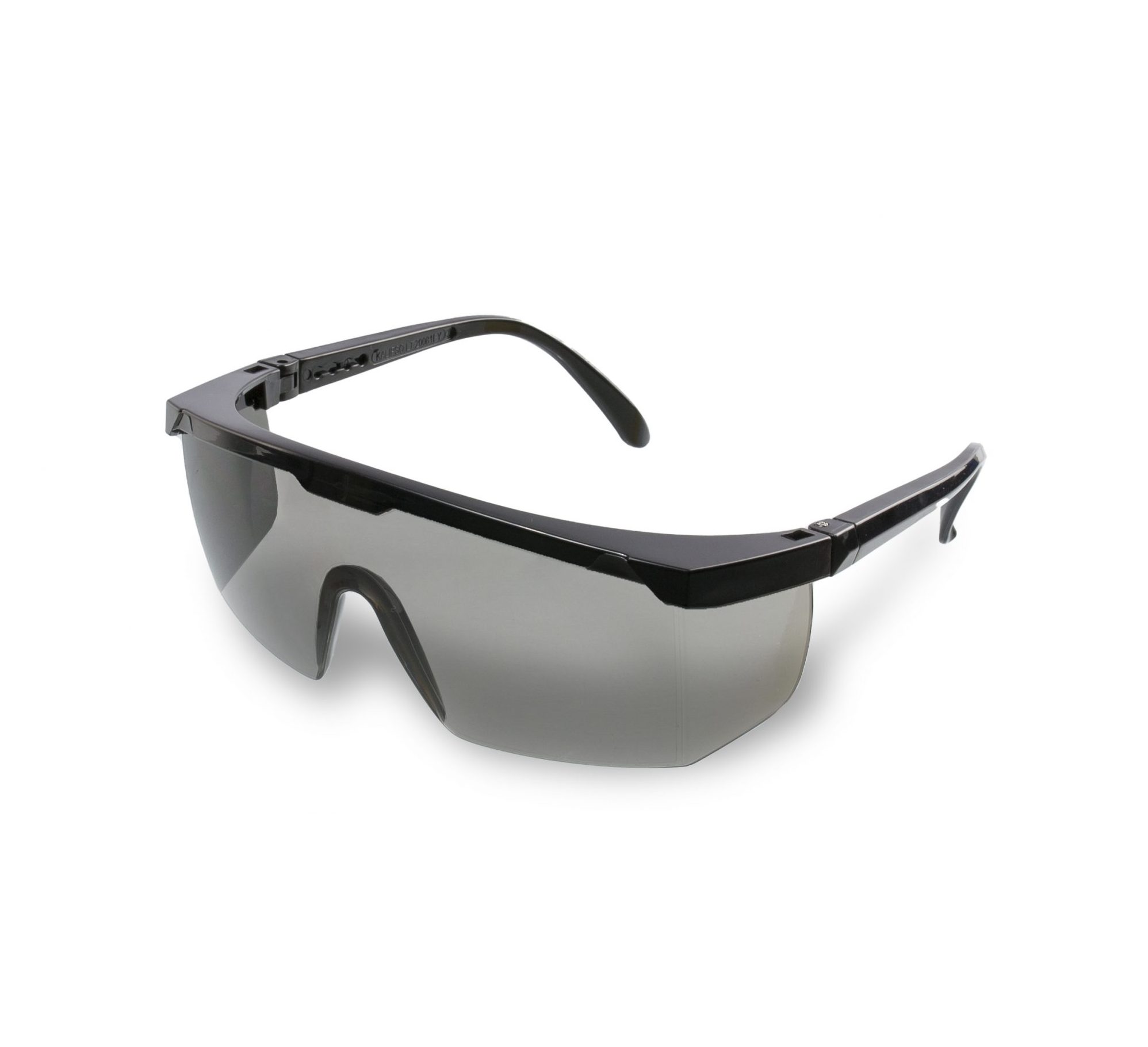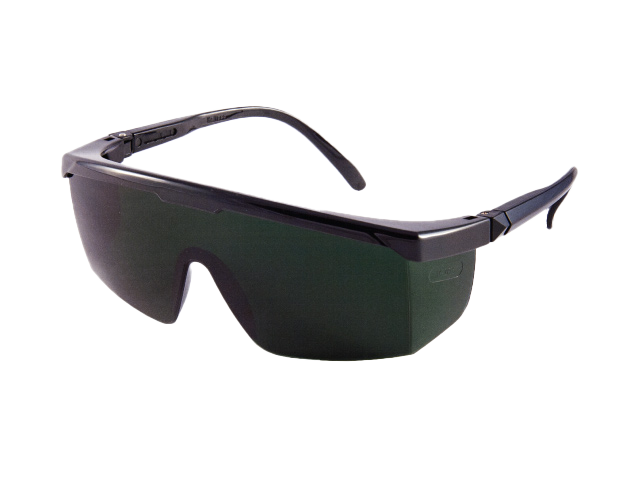 Óculos de proteção, constituídos de armação e visor em policarbonato, com ponte e apoio nasal injetado na mesma peça, hastes tipo espátula.