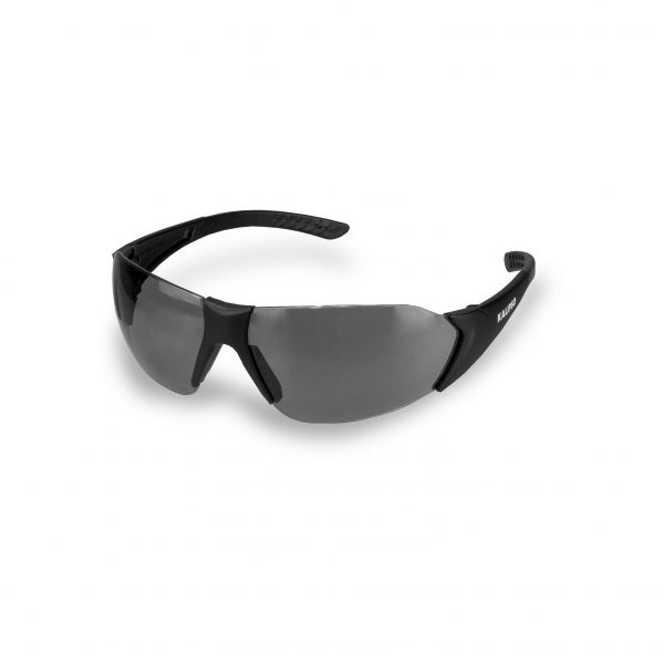 Óculos de proteção, constituídos de armação e visor em policarbonato, com ponte e apoio nasal injetado na mesma peça, hastes tipo espátula.