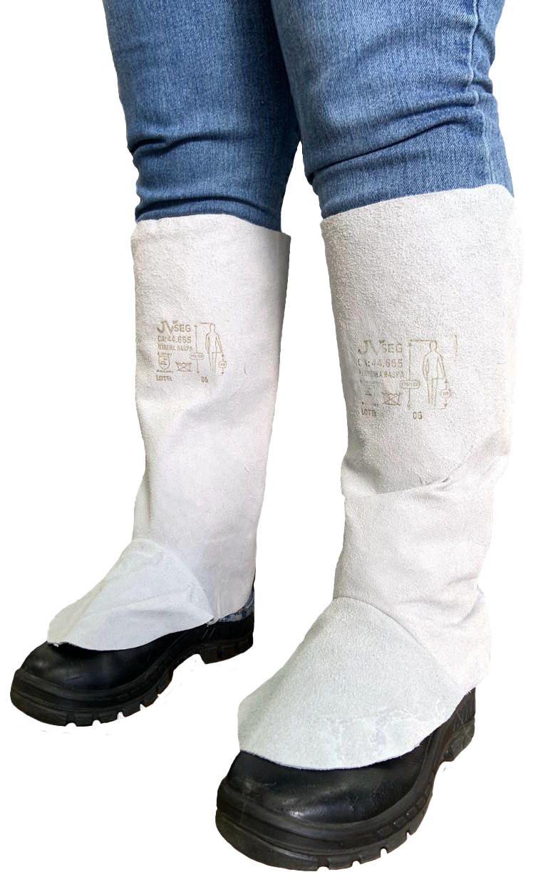 Proteção das pernas do usuário contra respingos de solda e fagulhas.