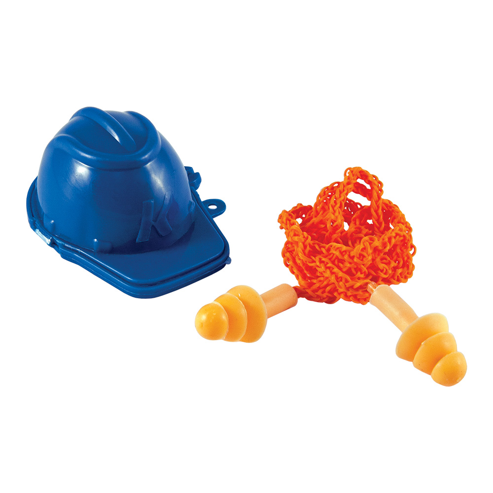 Protetor auditivo tipo plug composto de três flanges, confeccionado em silicone. Cordão de fixação confeccionado em algodão.