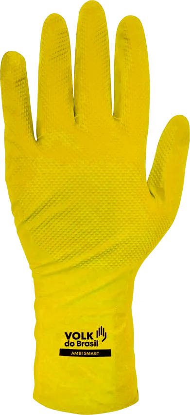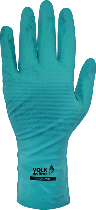 Luva de segurança e proteção confeccionada em nitrila, ambidestra, sem revestimento interno e com antiderrapante na face palmar e dorso.