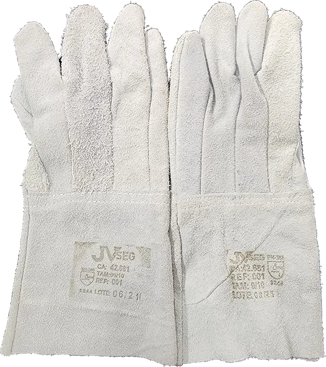 Luva de segurança confeccionada em couro tipo raspa, punho de 15cm.