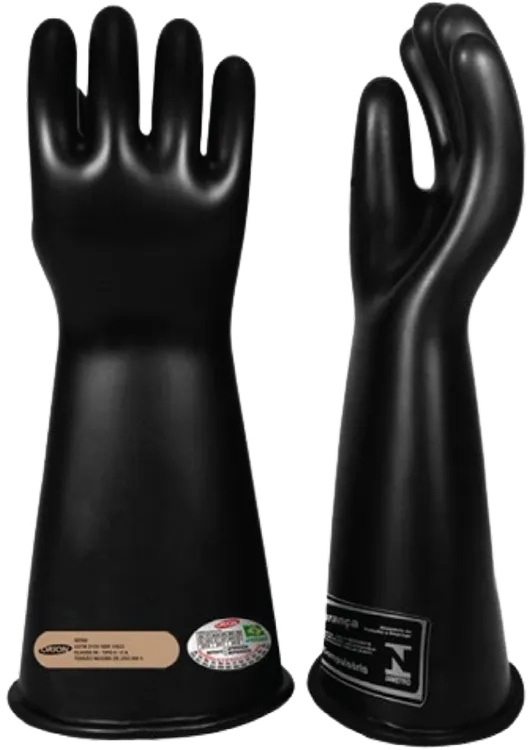 Luva de proteção contra choques elétricos por contato das mãos com instalações ou partes energizadas. Recomenda-se o uso conjunto com uma luva de cobertura em vaqueta.