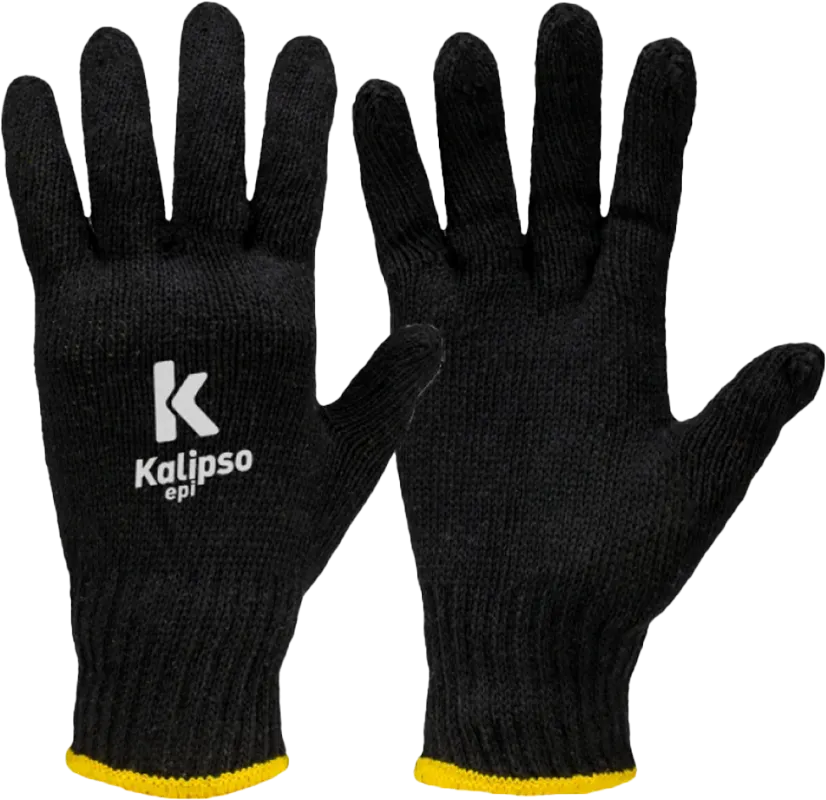 Luva tricotada em fios de algodão e poliéster, punho em elástico com acabamento em overloque.