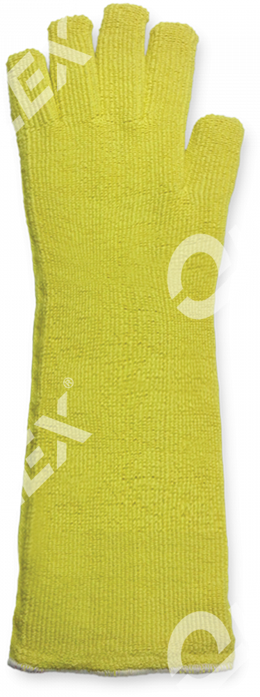 Luva confeccionada em malha grossa tipo grafatex com fios 100% aramida, forro interno de lã, comprimento total de 50cm.