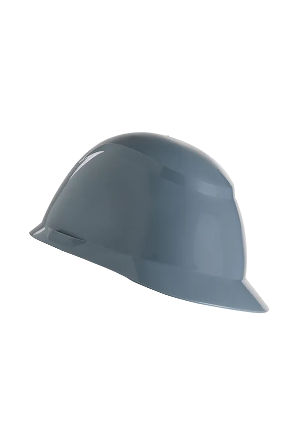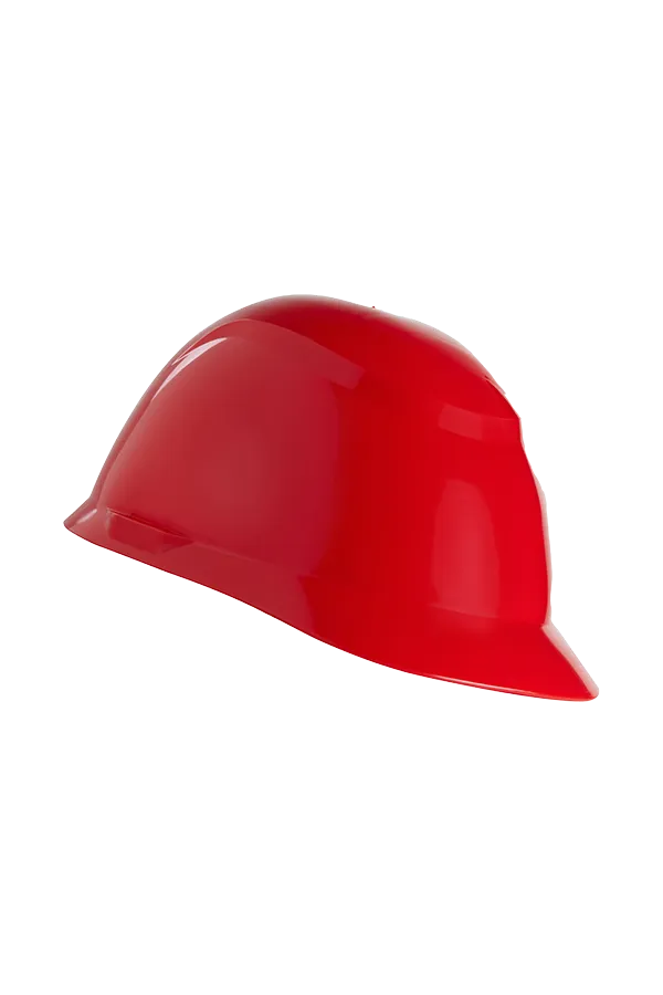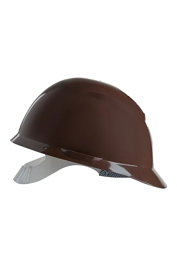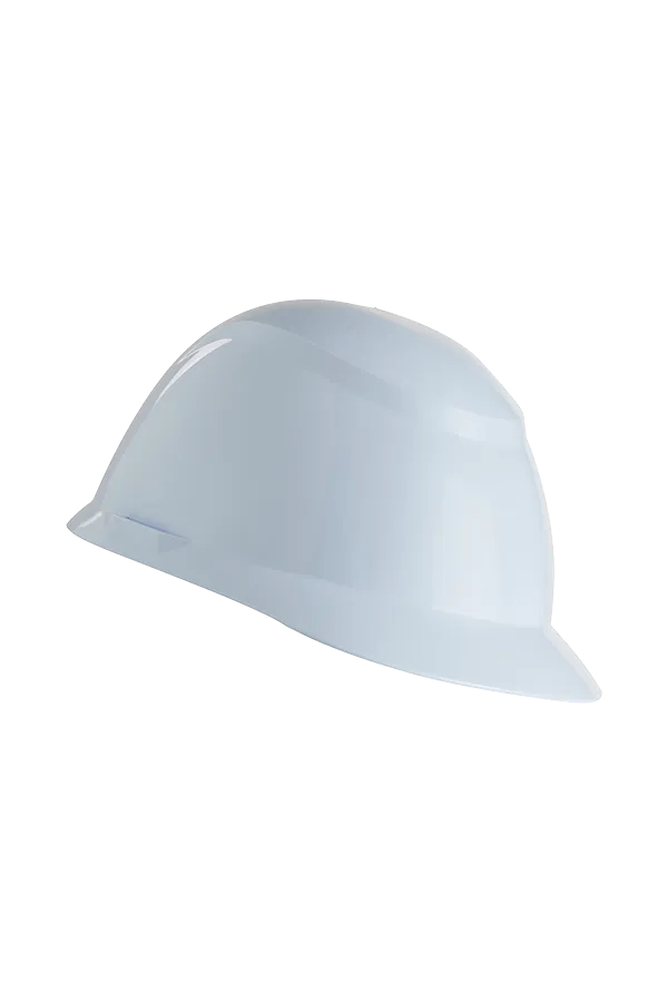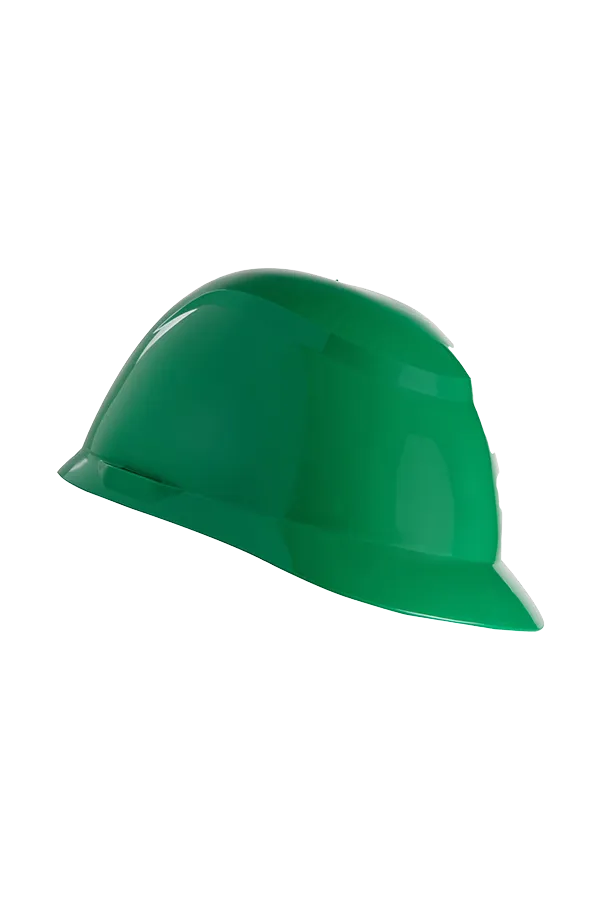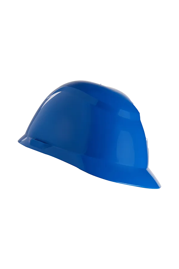 Casco injetado em polietileno de alta densidade, não sendo condutor de corrente elétrica, possui fenda lateral e aba frontal, com a opção de suspensão plástica, injetada em polietileno de baixa densidade.