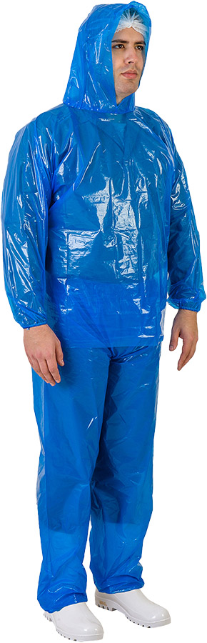 Conjunto de segurança confeccionado em resina de polietileno com capuz.