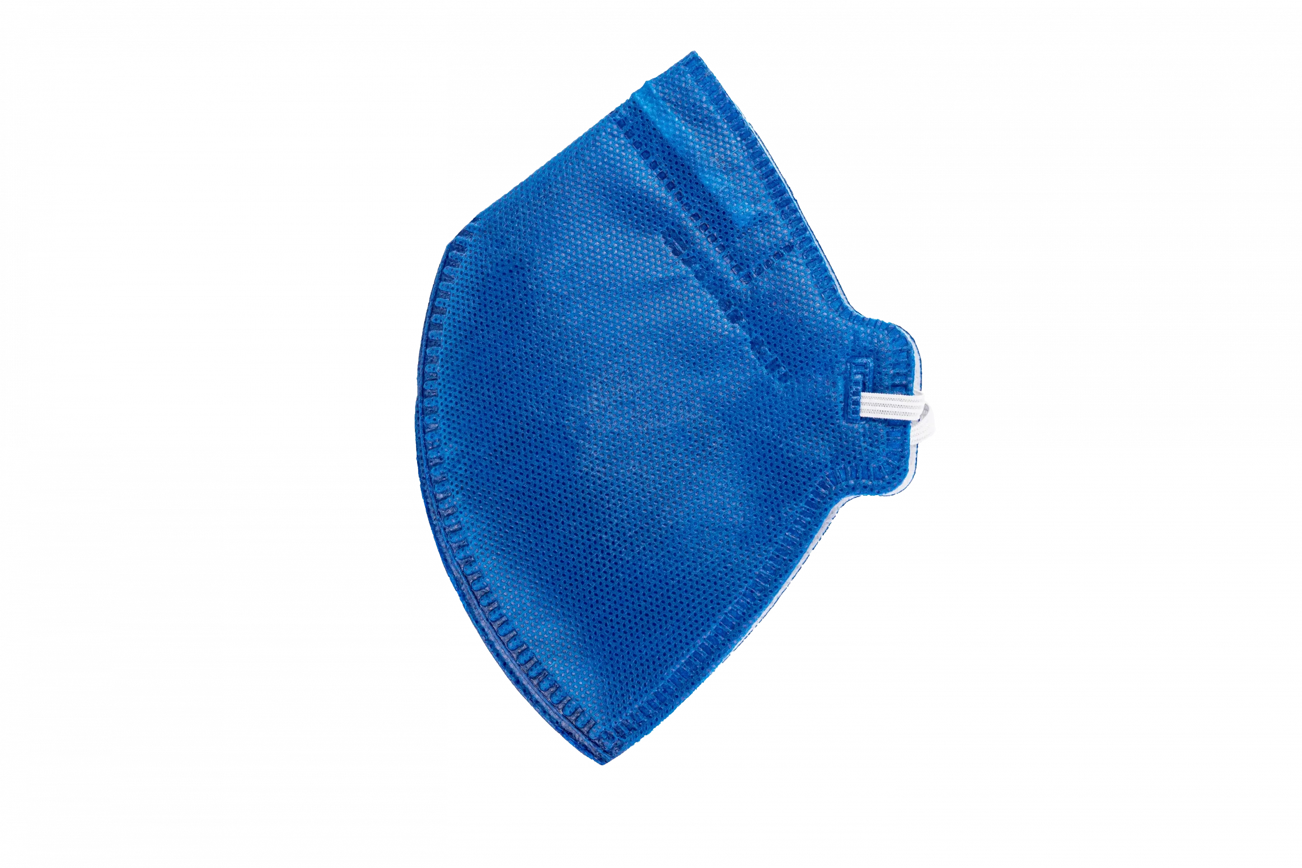 Máscara respiratória tipo semifacial filtrante para poeiras, névoas não oleosas e fumos (PFF2). Dobrável, sem válvula, c/ ajuste metálico no nariz.